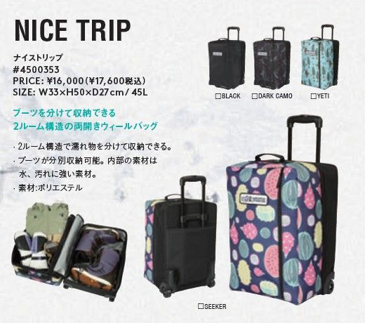 ブーツを分けて収納できる2ルーム構造の両開きウィールバッグ