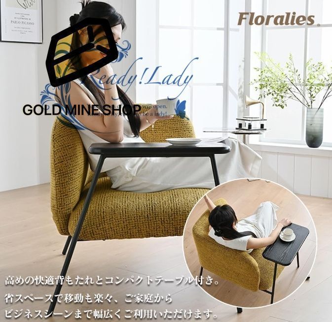 【コンパクトながら多機能】コンパクトソファでありながら、サイドテーブルと一体型の実用性。小さなスペースを有効活用できます。