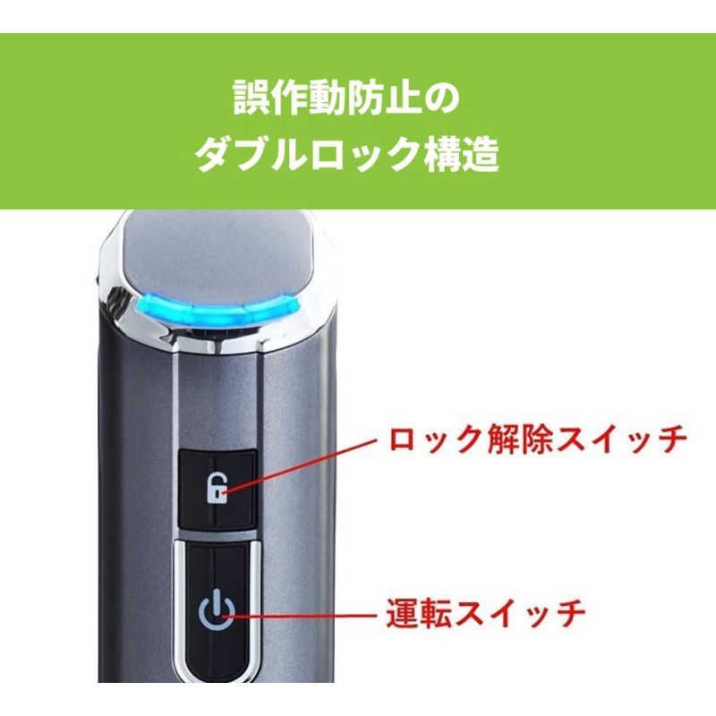 ●ダブルロック構造ロック解除、運転スイッチの2段階で誤作動防止