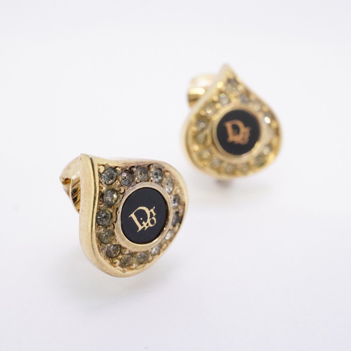 5 jib 0570 クリスチャンディオール イヤリング ディオールロゴ ドロップモチーフ GPメッキ ラインストーン ゴールド ブラック レディース