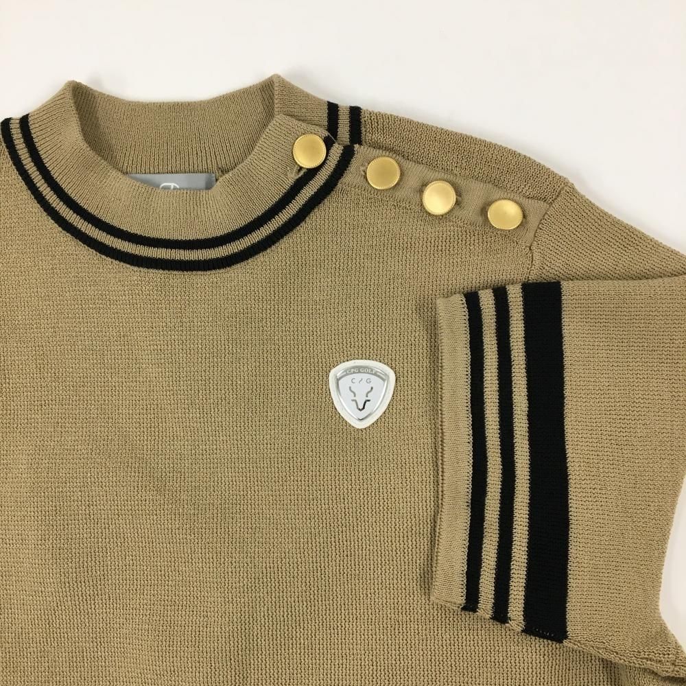 CPG 半袖ニットワンピース ベージュ×黒 肩ボタン 立体ロゴ レディース 2 M ゴルフウェア モデル