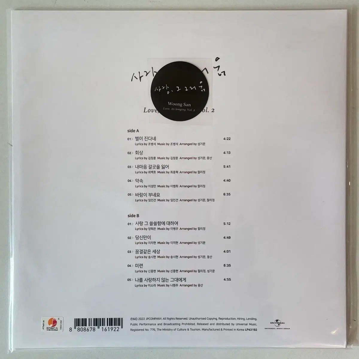 ウンサン 愛しい 그리움 2 早い lp