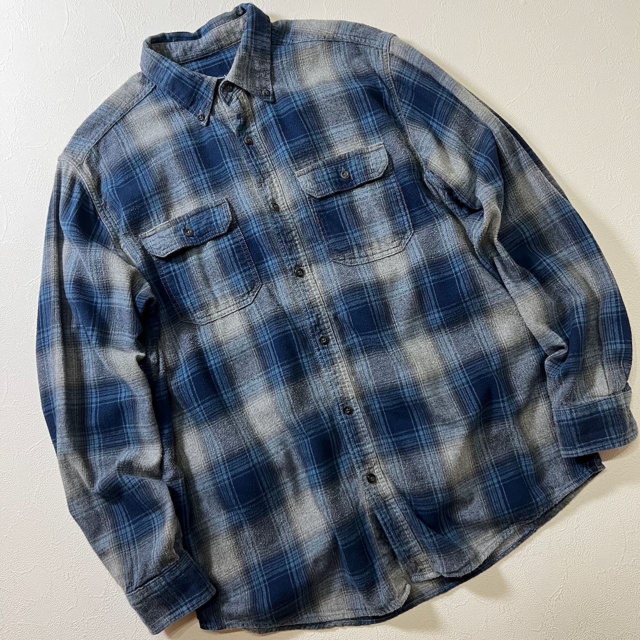 GEORGE BD オンブレチェック ライトネル 長袖シャツ ジョージ ブルー グレー L 古着