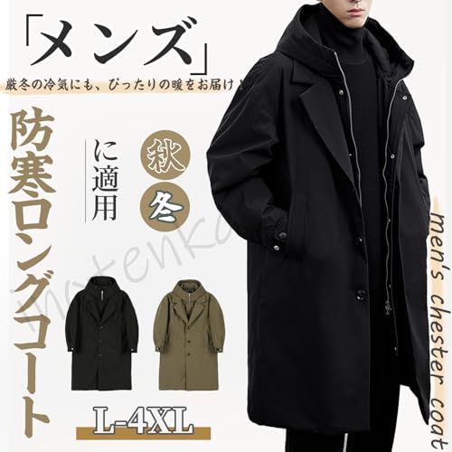 inotenka ダウンジャケット メンズ モッズコート ロングコート ミリタリー コート L 4 XL 厚手 防寒 防風 フード付き 大きいサイズ ミリタリージャケット ロング丈 中綿ジャケット アウター 秋 冬po 29 bff 070