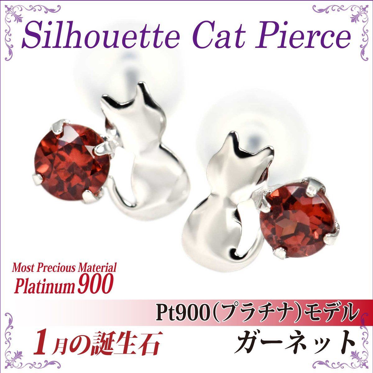 商品 ピアス ガーネット プラチナ 猫 両耳用 シルエット キャット ネコ スタッド 雑貨 誕生石