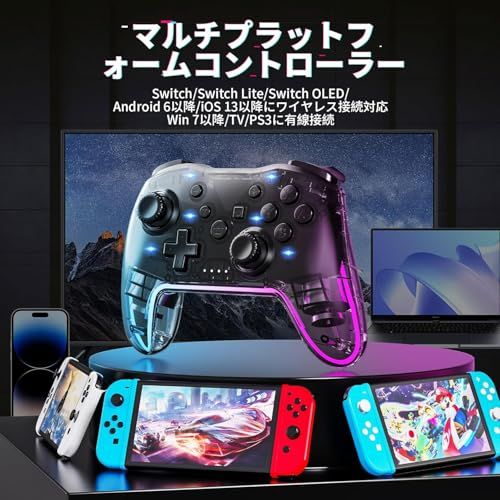 Twylyte Switch コントローラー ワイヤレス Proコン 1 2 Lite OLED PC iPhone Android対応 RGBライト ターボ連射 振動調整 スリープ解除ワンタッチ 人間工学設計 長時間プレイs