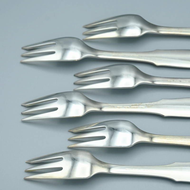 GEORG JENSEN ジョージジェンセン E.P.N.S. シルバープレート デザートフォーク スイーツフォーク カトラリー6点セット S 10-k 039