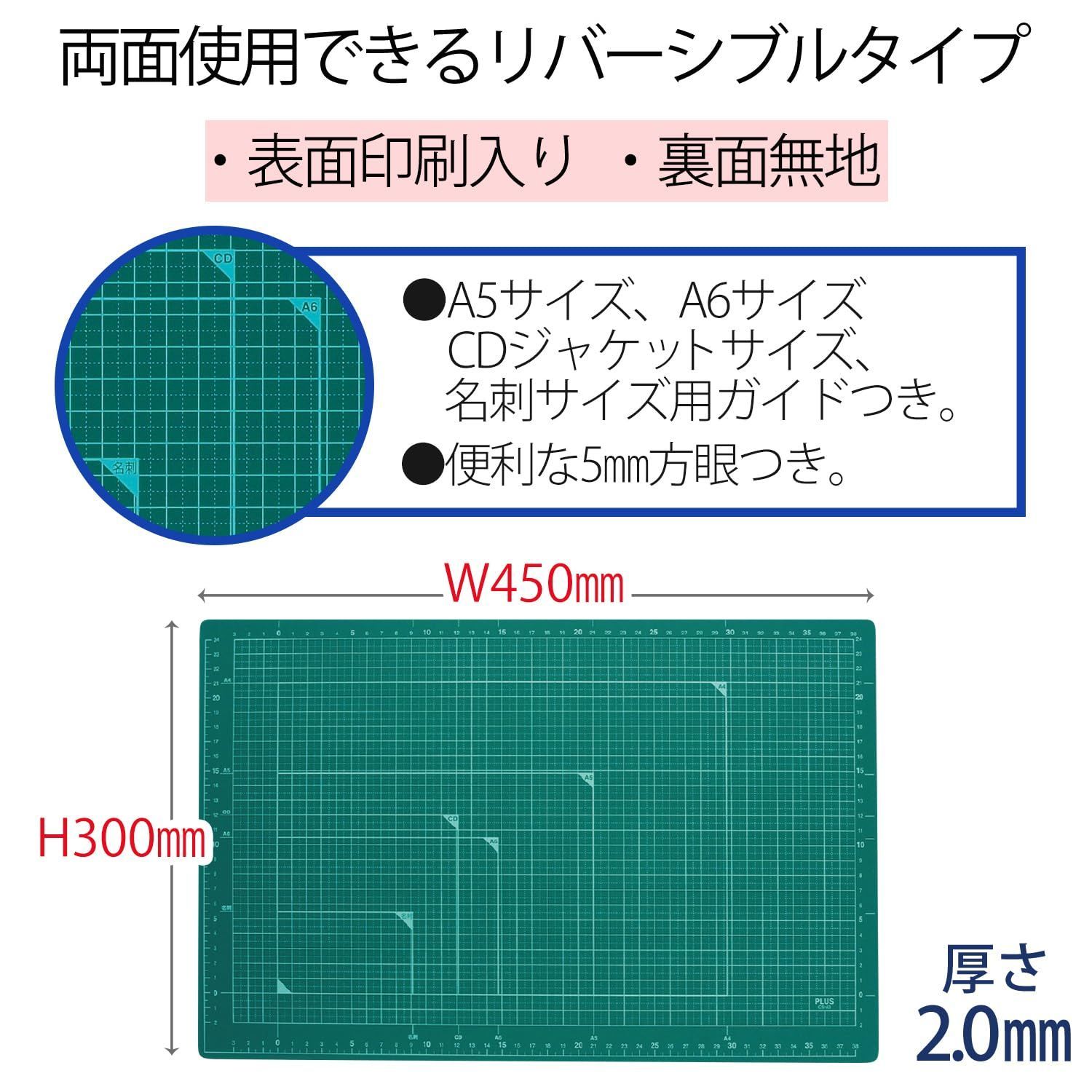 両面 A 3 カッティングマット 300 450 mm グリーン カッターマット セット CS プラス 48 584 10