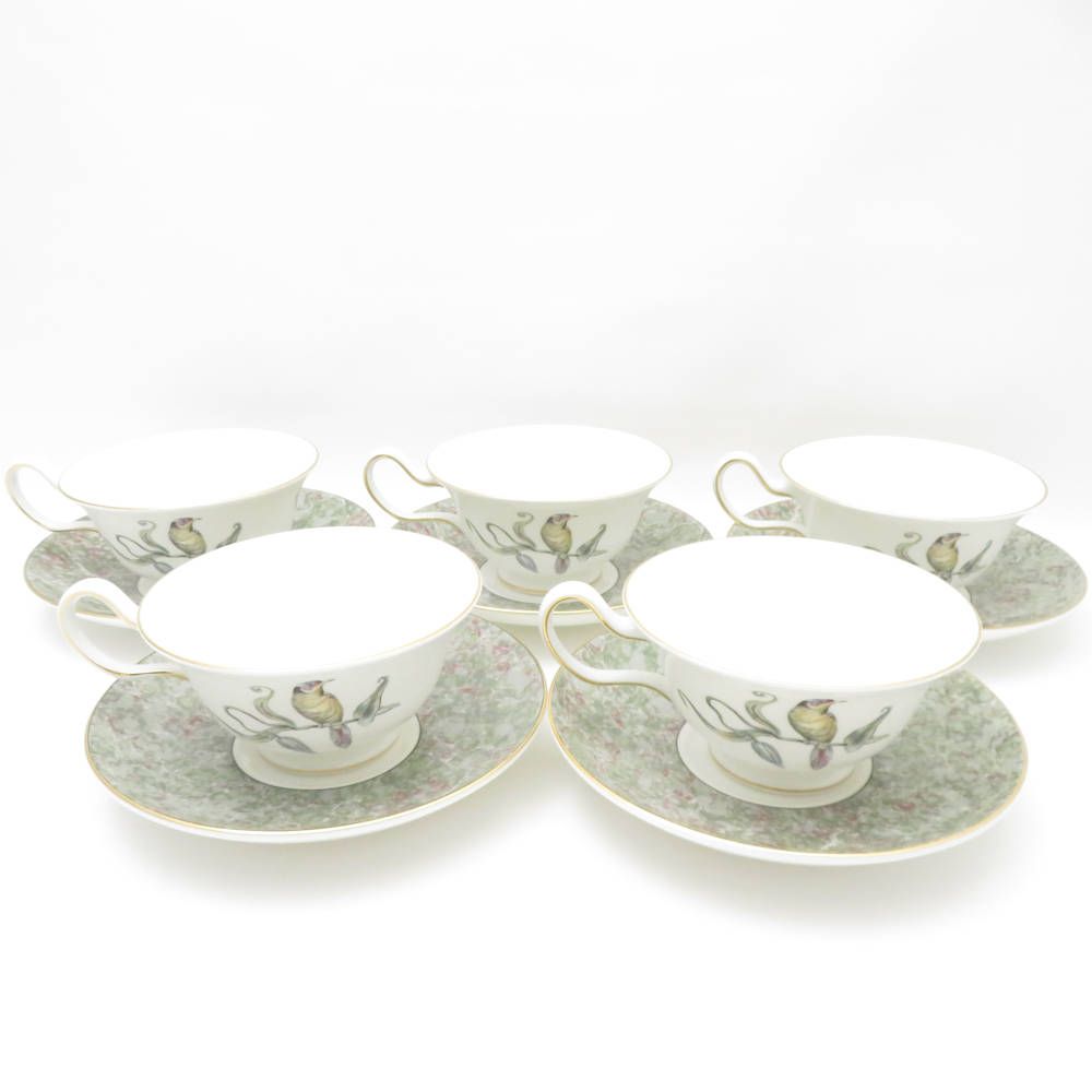 ウェッジウッド ハミングバード ティーカップ&ソーサー 5客 セット ピオニー 鳥 金彩 紅茶 英国