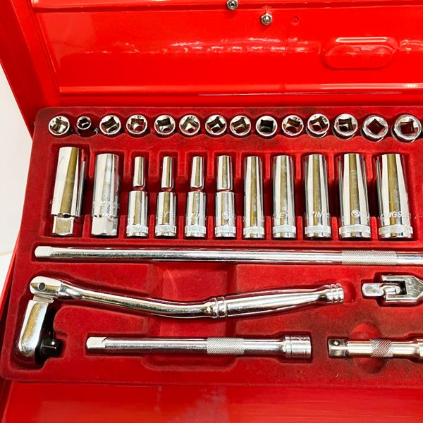 ■規格・仕様:ソケット:6,7,8,9,10,11,12,13,14,15,16,17,18,20,21,22 形状6角/ソケット(インチ):1/4,5/16,3/8,7/16\" 形状6角/ディープソケット:7,8,9,10,12,13,14,17,19 形状:6角/プラグソケット:16.0,20.8 形状:6角/ヘキサゴンソケット:5,6,8,10/トルクスソケット:TH30,TH40,TH45,TH50/エクステンションバー:75,150,300/ユニバーサルジョイント/ラチェットハンドル/ベントラチェットハンドル/フレックスハンドル/スライディングTハンドル/両口ロングスパナ:6X7,8X9,10X12,11X13,12X14,14X17/メガネレンチ:8X10,11X13,12X14,14X17,19X21,22X24/ツールボックス:W533 X D220 X H294(460)
