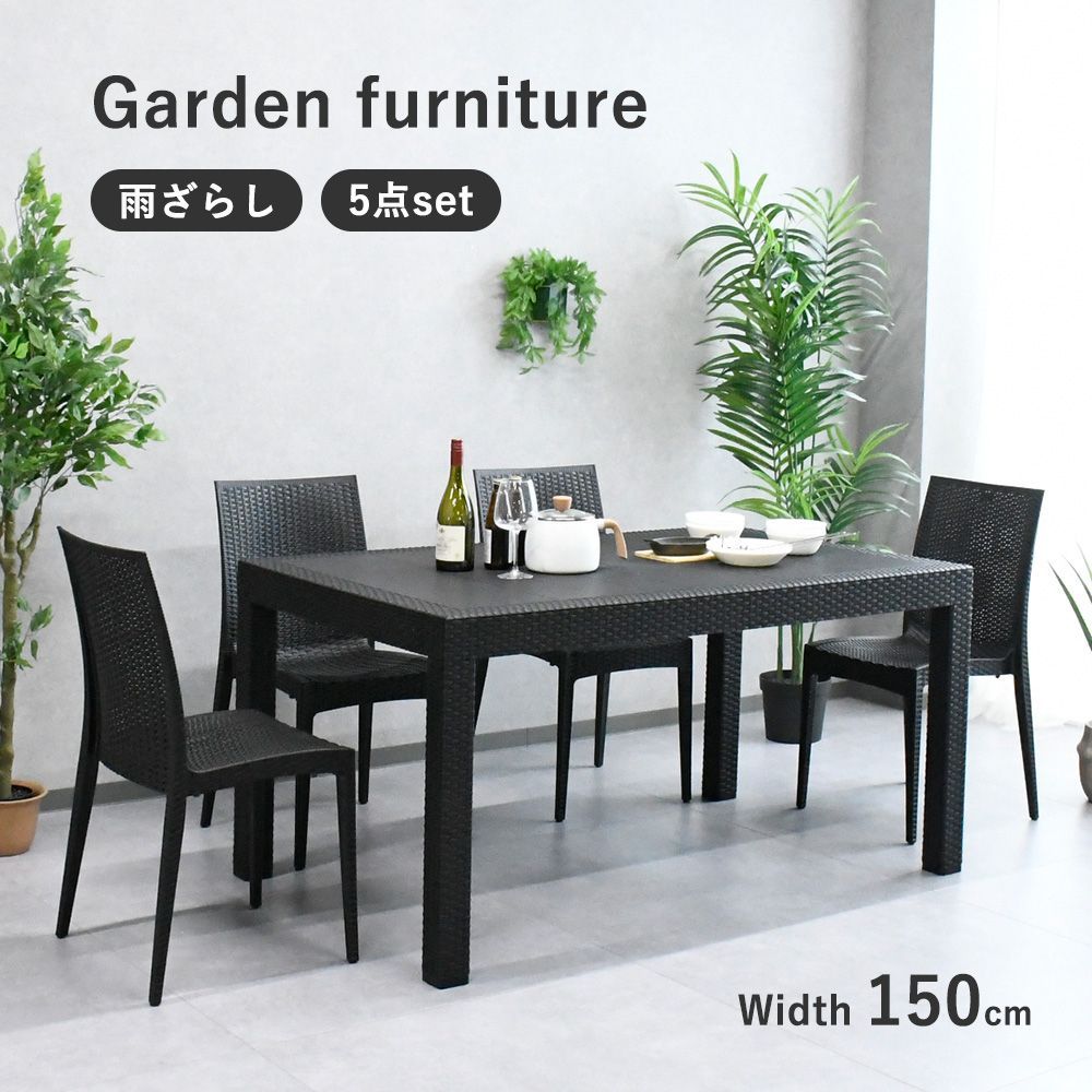 ガーデンテーブルセット 雨ざらし ラタン調 おしゃれ ガーデンテーブル 5点セット 幅150 屋外 チェア アウトドア 軽量 4人掛け 150 cm