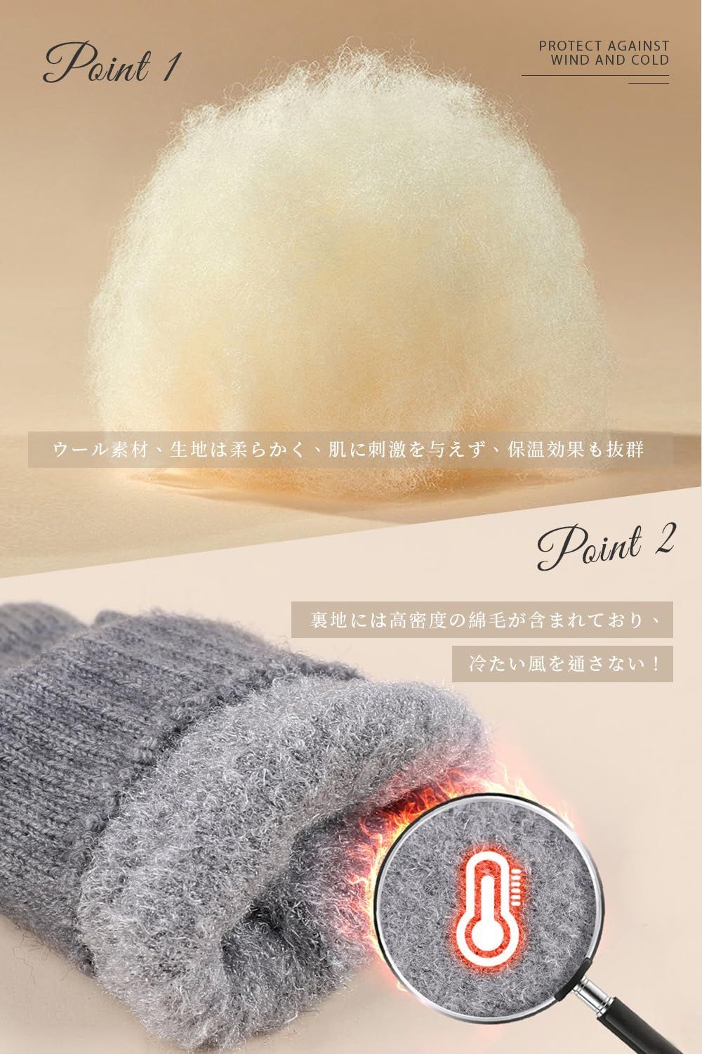 【暖かいレディース手袋】ふんわりとした柔らかく暖かみのある混紡生地を厳選し、しなやかで快適な肌触りにすることで、着用時間が長くても締め付け感がありません。内側には高密度の裏起毛して、外の冷たい空気を遮断し、温まった空気をしっかりに閉じ込めんで、保温効果をさらに高めのかわいい手袋です。