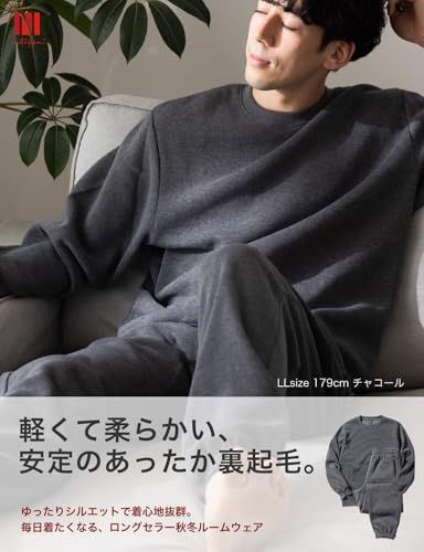 Nutopia スウェット 裏起毛 パジャマ メンズ 上下セット 秋冬 ルームウェア ゆったりシルエット 男女兼用 ペアパジャマ 部屋着 セットアップ 防寒 柔らか 裏フリース チャコール ライトグレー 1 P 2 3 Pe