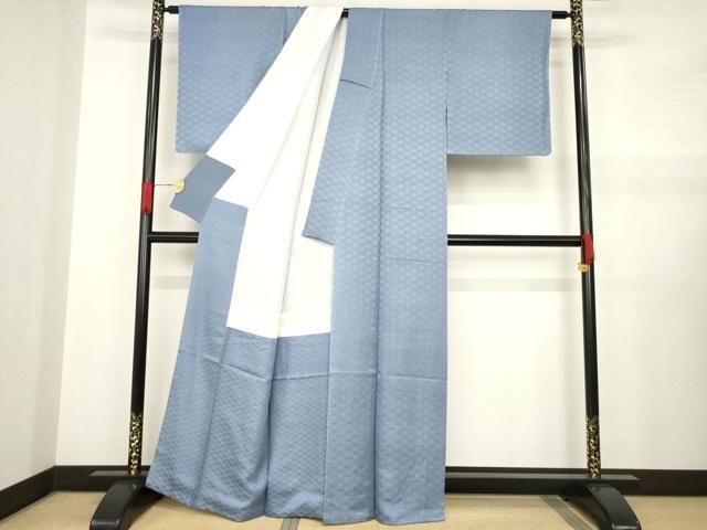 平和屋着物 上質な色無地 花青海波地紋 薄鼠色 正絹 ck