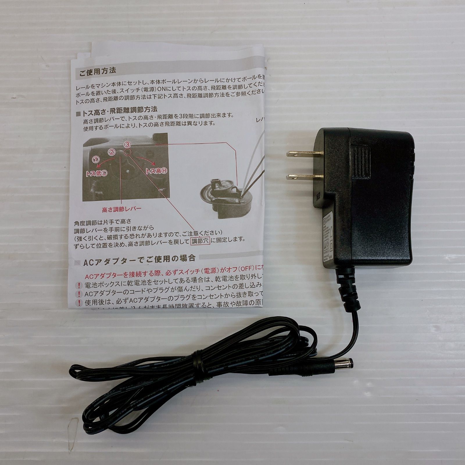 その他仕様:AC100V・単一乾電池8本使用、トス角度調節式、ACアダプター付