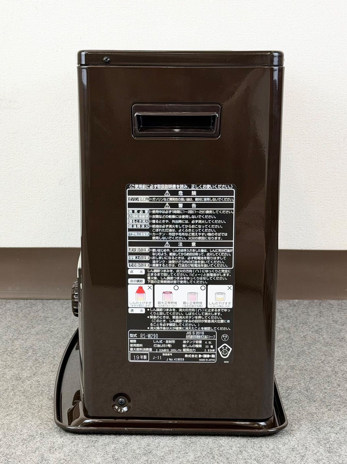 J 24 CE 16 トヨトミ 石油ストーブ RS-W 290 2019年製 タンク容量4 L
