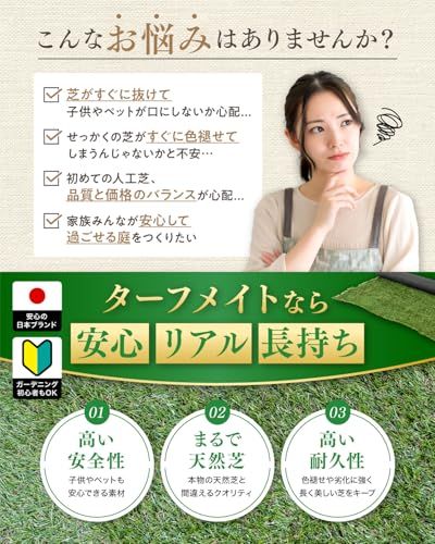 【ガーデニングのプロ監修】ガーデニングのプロフェッショナルが監修した商品です。庭作りの専門家が選んだ高品質の素材とデザインにより、初心者でも安心してお使いいただける、見た目にも美しい人工芝をお届けします。