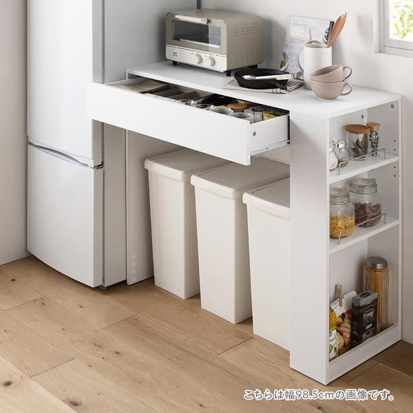 ゴミ箱上 収納カウンター 幅71 cm ホワイト 引き出し付き 棚付き 可動棚付き お手入れ簡単 スペース有効活用 天板頑丈 ダストボックス上用 キッチン収納 キッチンカウンター キッチンボード 収納棚 収納家具 キッチン家具 インテリア家具 キッチン 台所 組