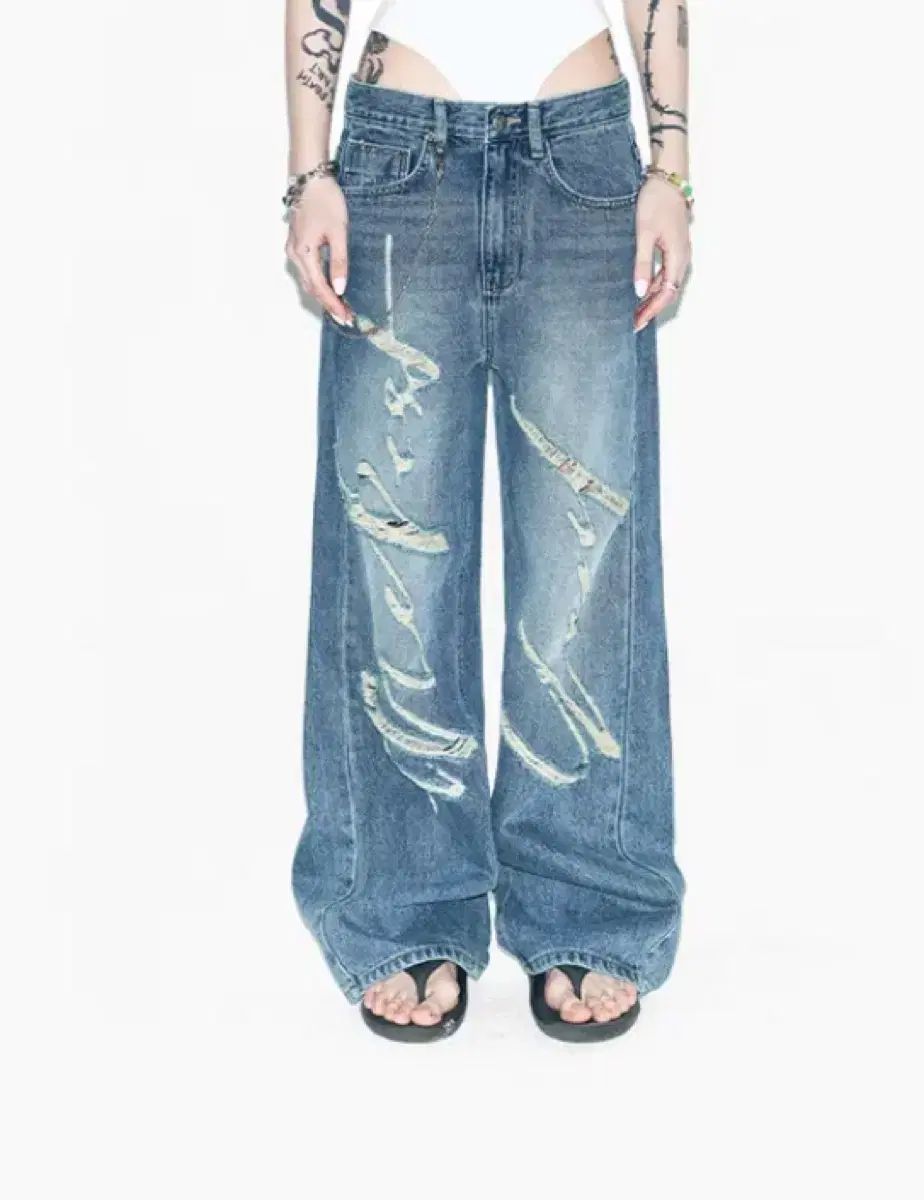 Yeel ワイイエル シグネチャーロゴ DESTROYED デニム ブルー