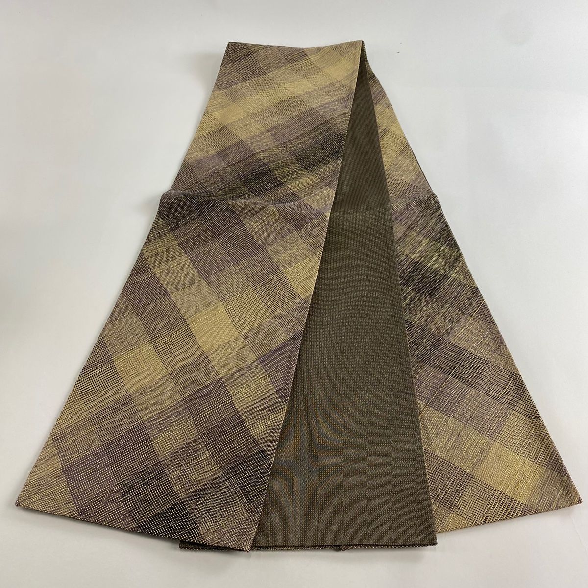 袋帯 秀品 斜め格子 金糸 金色 全通 正絹