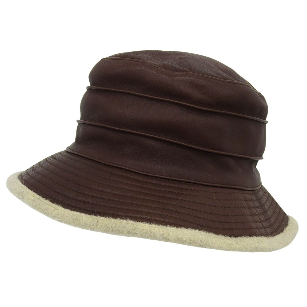 HERMES エルメス MOTSCH レザーハット バケットハット 小物 メンズ ブラウン 57 ヴィンテージ
