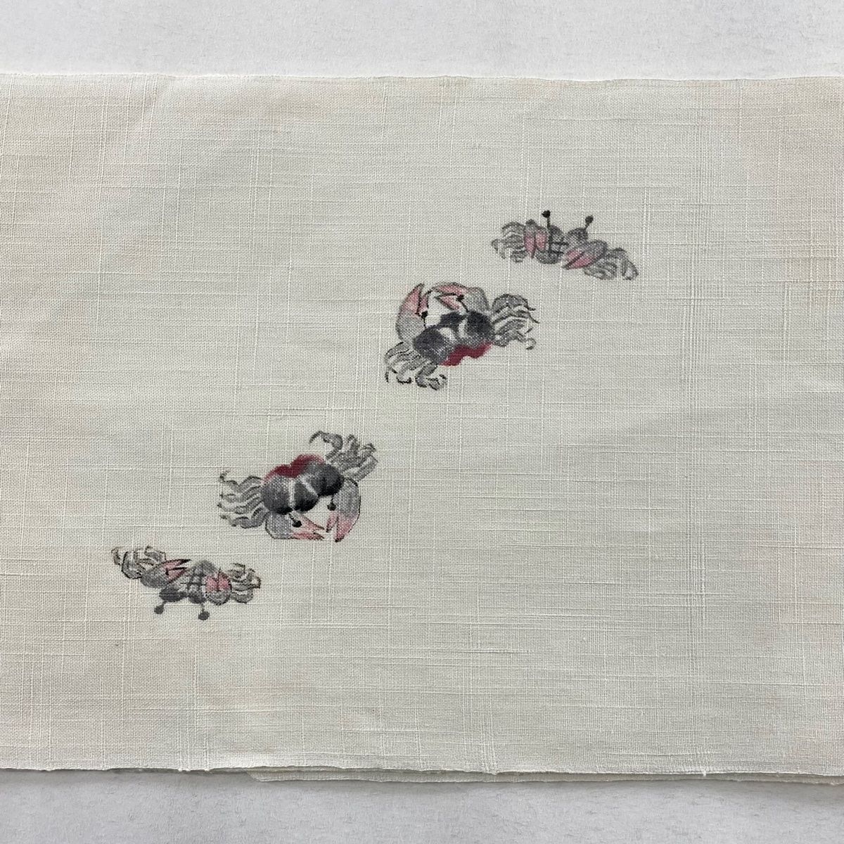 名古屋帯 落款 夏帯 紬地 松葉仕立て 八寸名古屋帯 蟹 クリーム 正絹
