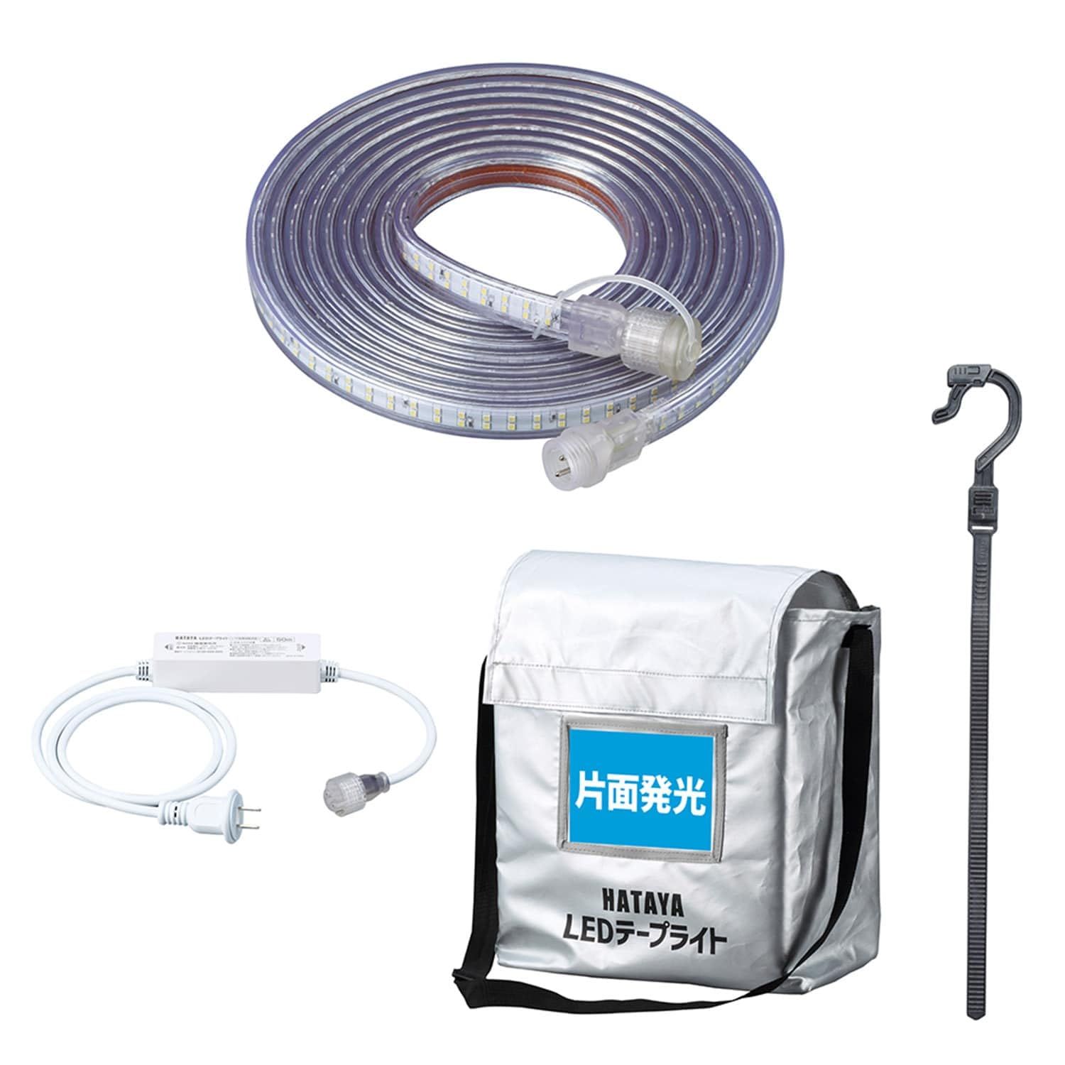 ハタヤ (HATAYA) 照明 LED 連結点灯可能 屋外用 (防雨型) IP55 防塵 防水 IK10 耐衝撃保護 全光束900Lm 長さ5m 二重絶縁 アース不要 屈曲に強い メンテナンス可能 電源ケーブル 結束用エクスバンド 収納袋 作業灯 ワークライト テープライト 家庭用 業務用 工場用 建設現場 LEDテープライト (片面発光タイプ) LTP-5S セット