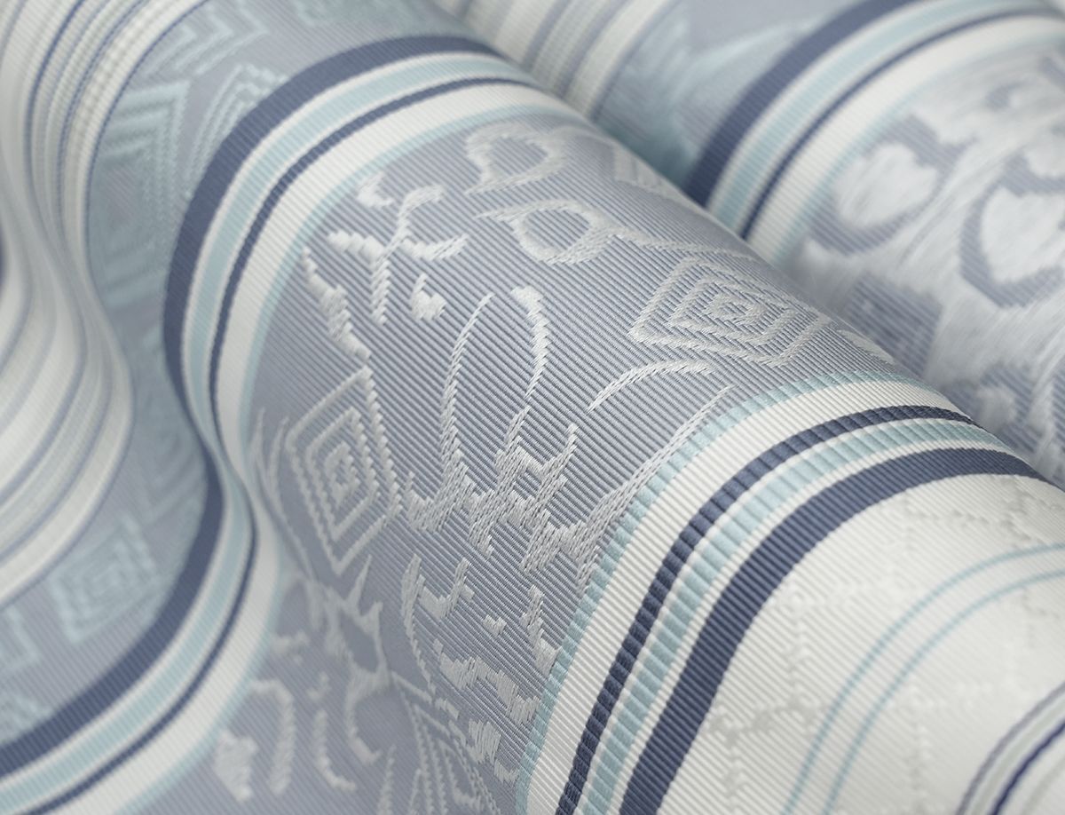 白地にグレー・ブルー縞の全通柄です。