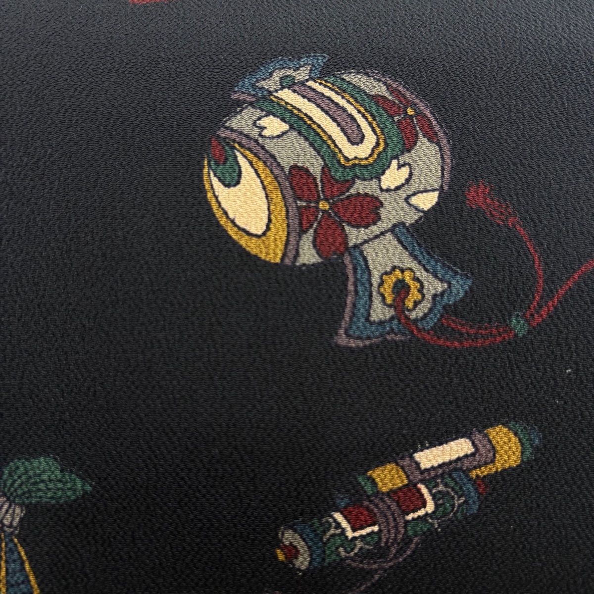 名古屋帯 秀品 宝尽くし 桜 縮緬 黒 正絹