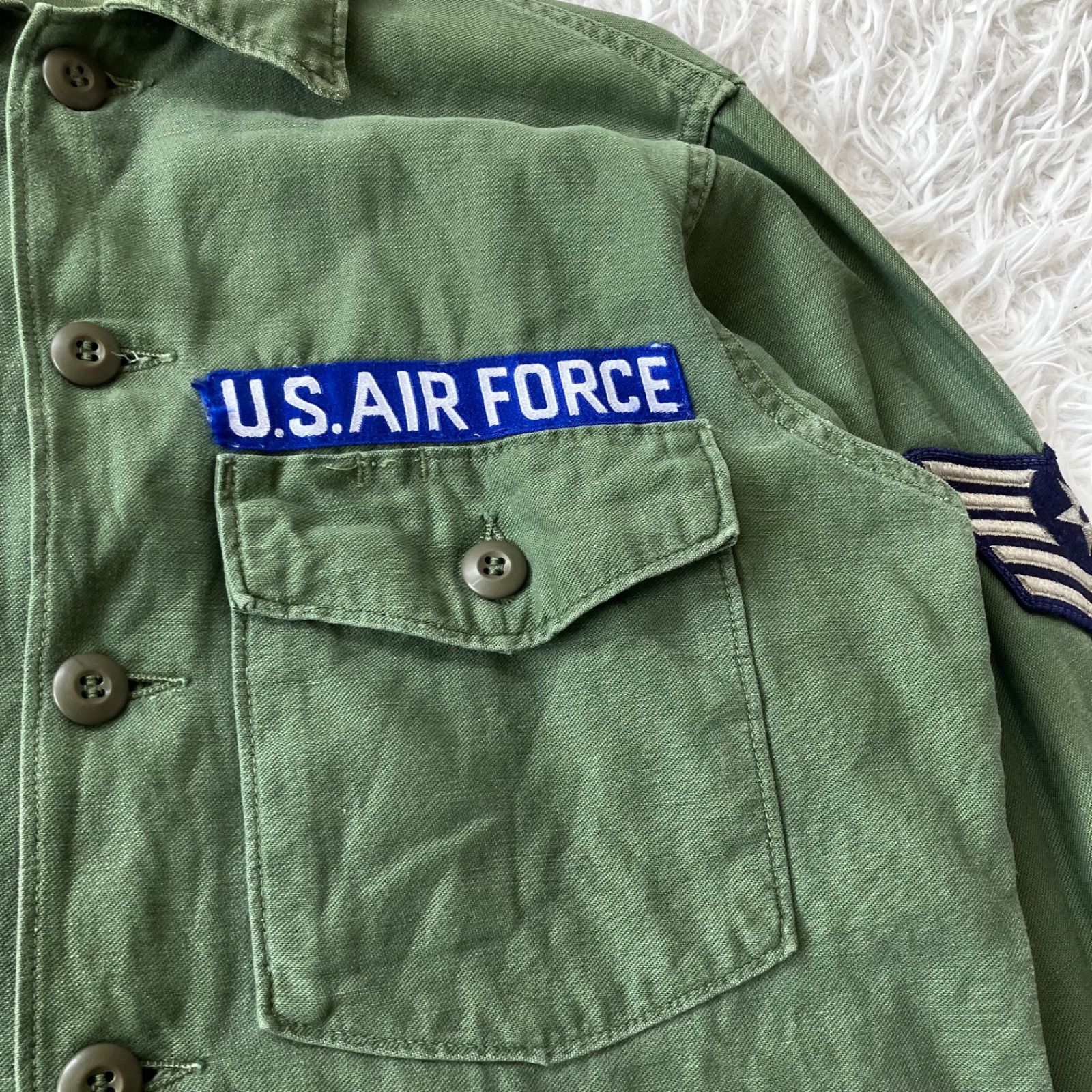60 s US AIR FORCE OG-107 アメリカ軍 usarmy コットン サテン ユーティリティ 古着 ARMY ミリタリー シャツ 3836