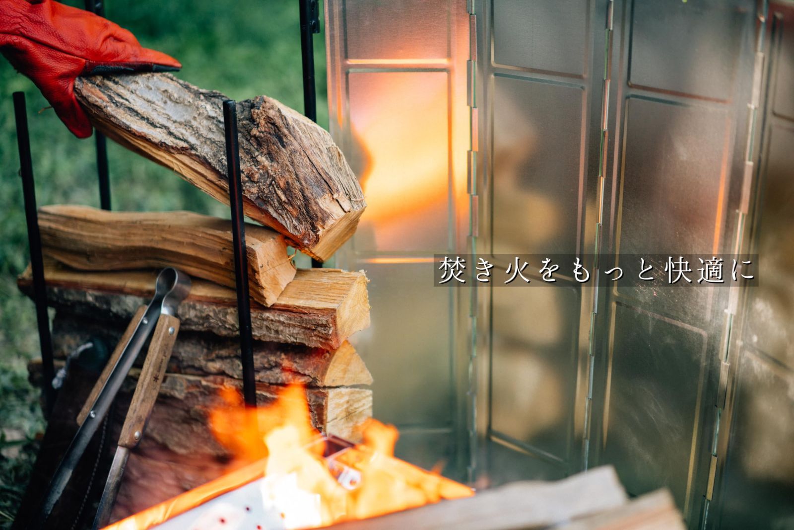 リフレクターとの連結で薪の乾燥を促しながらの焚火を