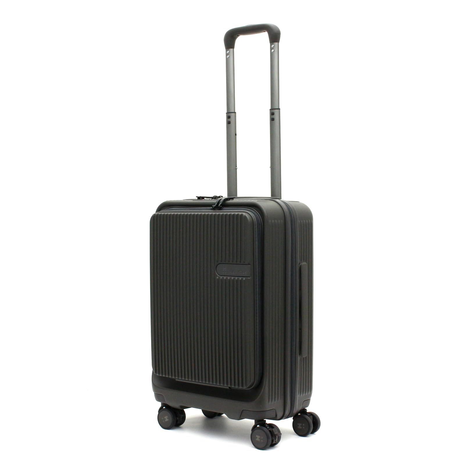 双輪、ストッパー、拡張機能付き 機内持込可能サイズ、背面は傷つきにくいマット加工