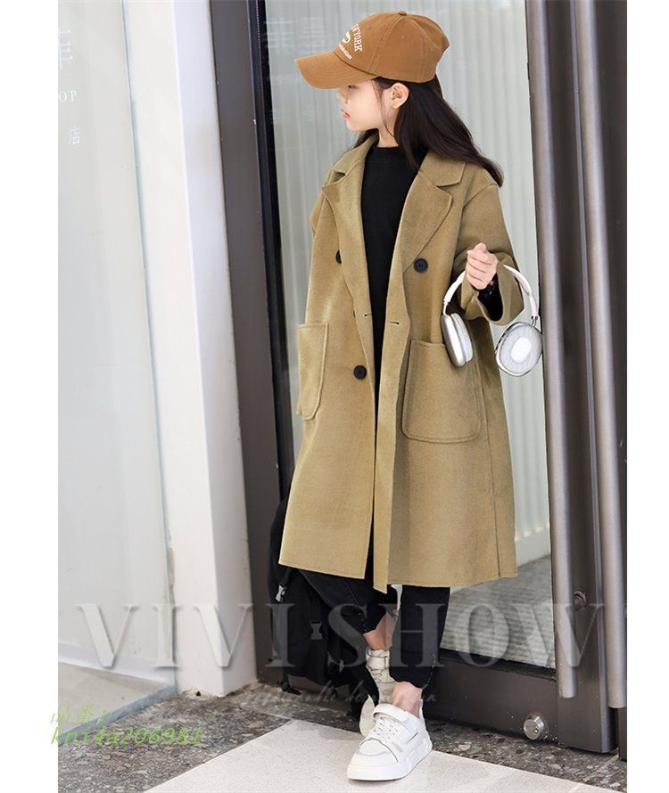 子供服女児用コート 秋物ウールコート ミディアムコート ダブルフェイスウール コート 秋冬親子お揃いアウターウェア kni 4 a 206981