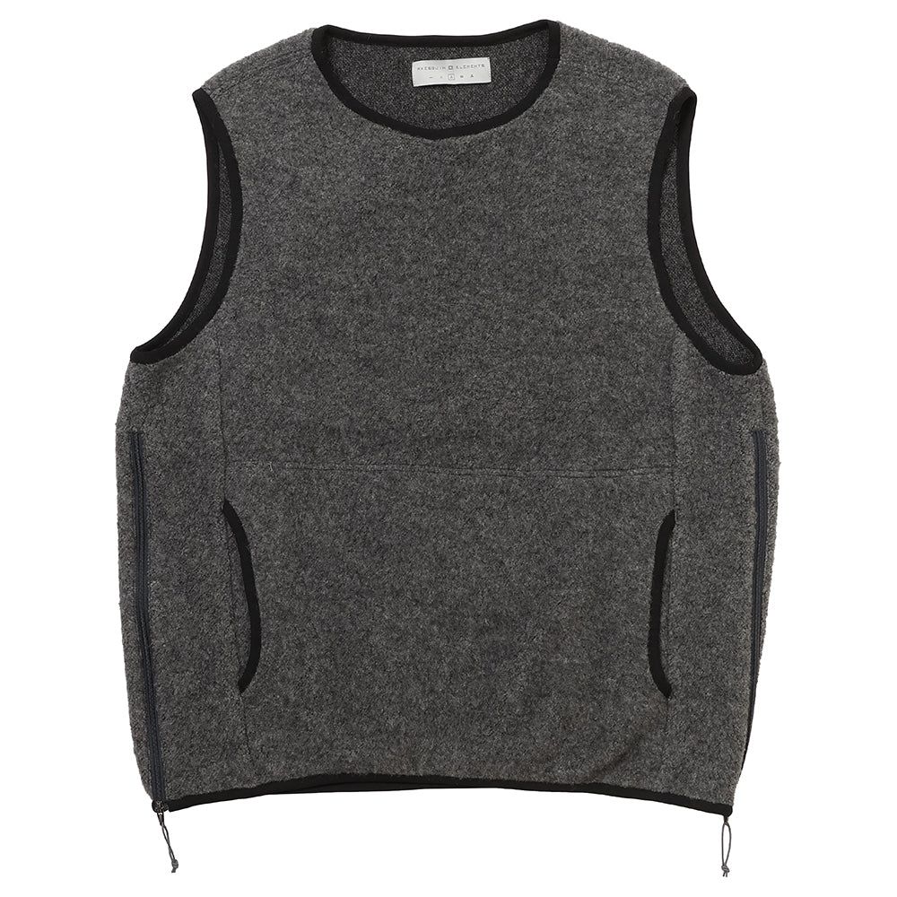 紅葉を愛でながらひと気のない古道をのんびり歩くのに最適な、ちょうどいい厚みのパイルモッサーのベストです。衿やフードのないシンプルな首まわりはダウンジャケットなどを重ね着しやすく、アクセスしやすいハンドポケットは手の保温に便利です。裾から開く両脇のジッパーは脱ぎ着をするのに便利で、開き具合を調節することでリッラクスできます。ニット素材は通気性が高いので着っぱなしでもオーバーヒートしにくく、汗を積極的に吸収・放出してくれるので快適な状態が長続きします。specifications:・ユニセックス・通気、調湿、保温、吸汗、速乾、防臭・やわらかな起毛のウール混パイルモッサー素材・着やすさを考慮した肌面のジャージ・クルーネック・袖ぐりストレッチ・脱ぎ着しやすい左右のジッパー・ハンドポケット+起毛メッシュ・裾ストレッチ・前後差のある裾