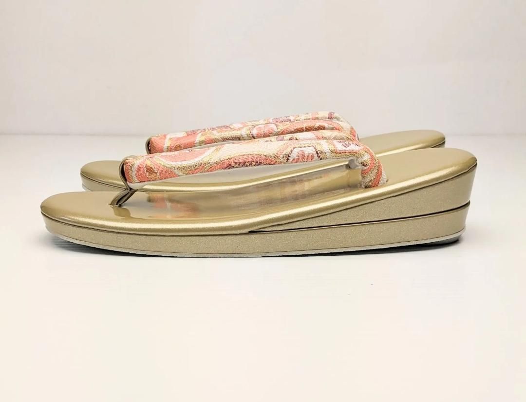 草履バッグセット 振袖用 帯地 ゴールド 梅 フリーサイズ w 5-4