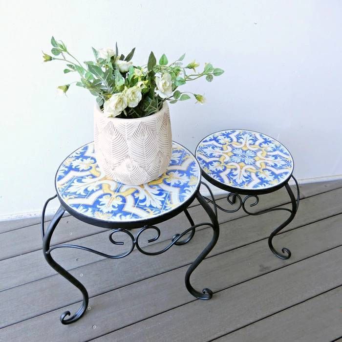 プランタースタンド 花台 モザイクタイル イエロー おしゃれ アイアン スタンド 鉢置き セット ガーデンラック 園芸ラック 鉢台 観葉植物 フラワーラック ガーデニング 什器 ディスプレイ