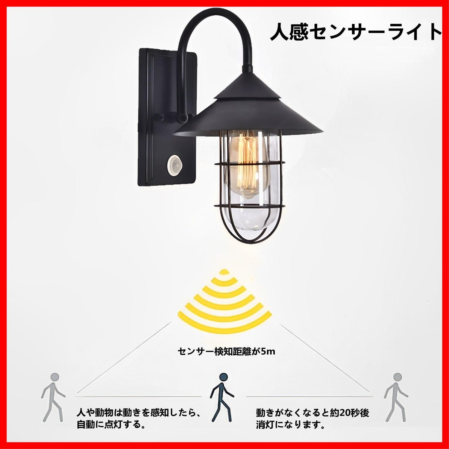 玄関灯 人感センサー 玄関照明 屋外 ポーチライト ウォールランプ レトロなウォールライト 庭園灯 照明器具 KAWELL 防雨型IP 65 照明 壁掛け照明 外灯 E 26口金 電球 ブラック 308