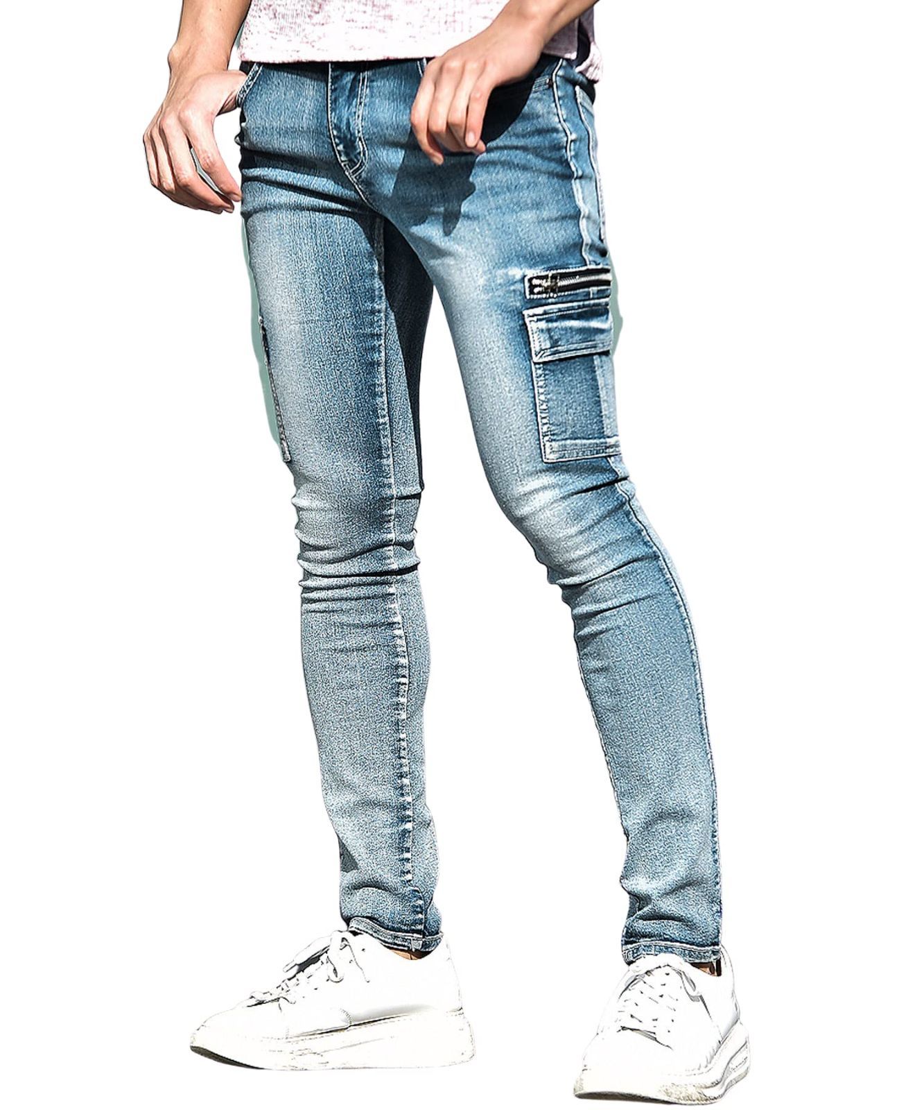XL_ブルー(カーゴ) [ルービック] 選べるデザインスキニーデニムパンツ ジーンズ メンズ ダメージ カーゴ パッチワーク 細身 ストレッチパンツ スキニー XL ブルー(カーゴ)