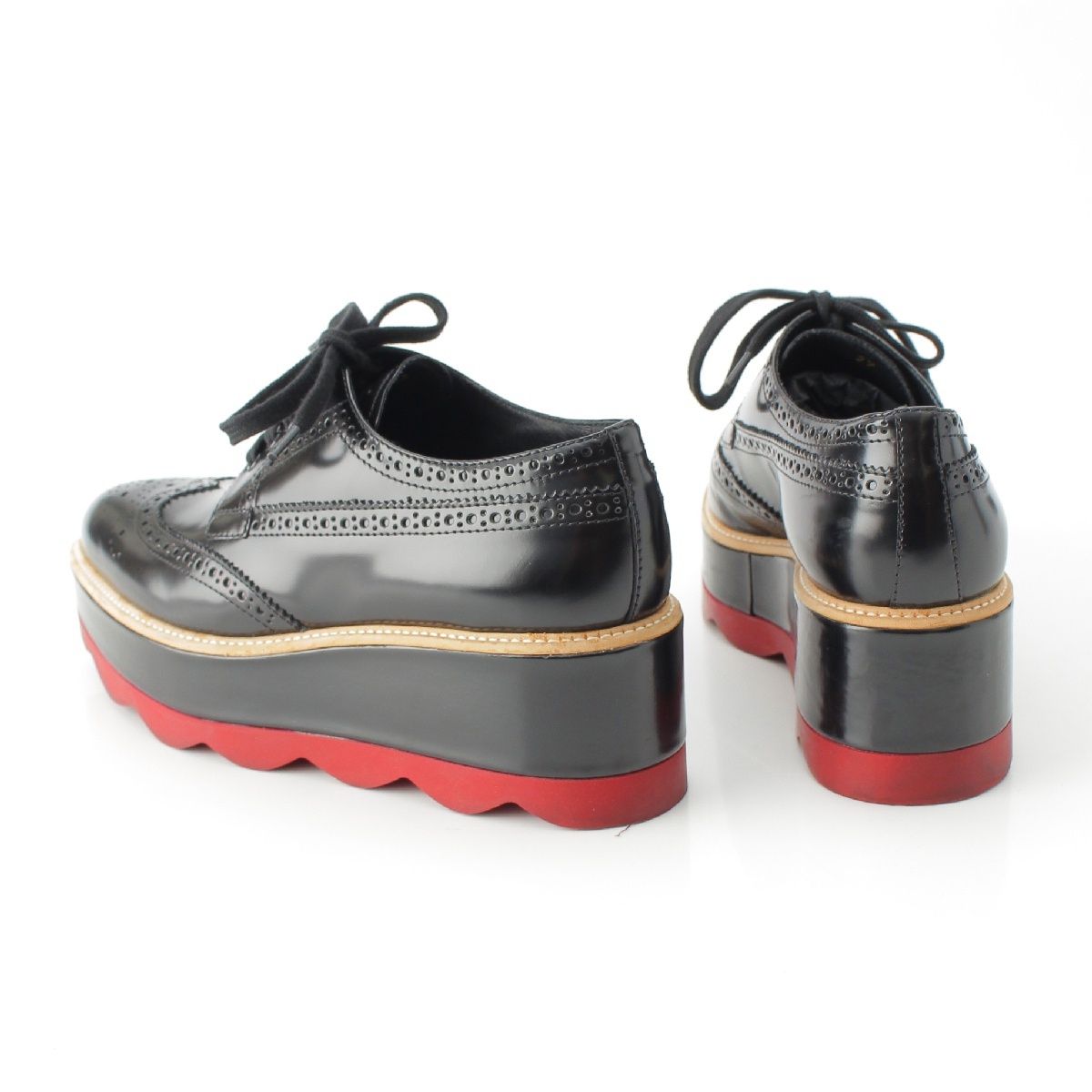 プラダ レザー 厚底 プラットフォーム ウィングチップ レースアップ ドレスシューズ ブラック 37
