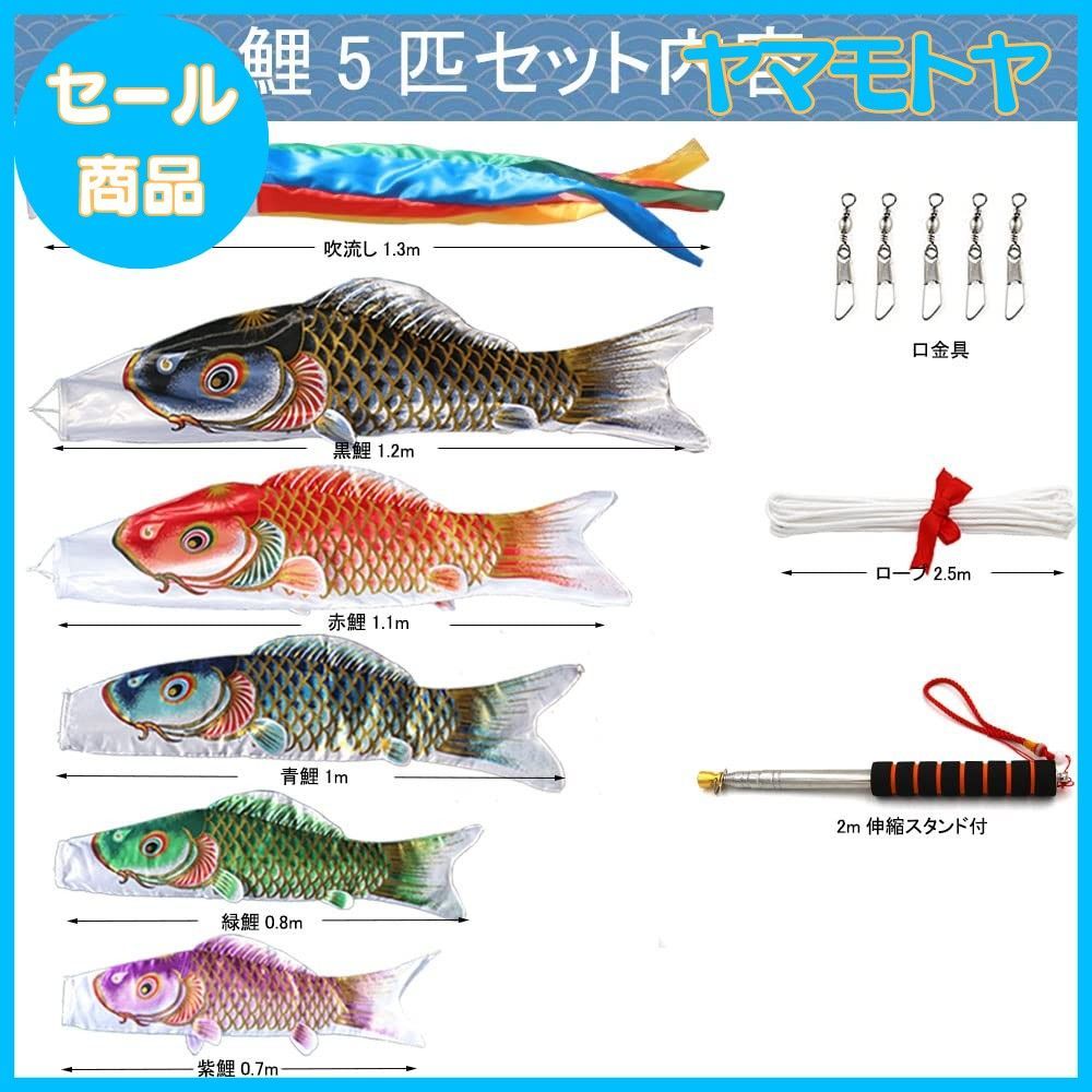【2022年度新作鯉のぼり】金龍鯉金箔押セット内容:五色吹流し1.3m・黒鯉1.2m・赤鯉1.1m・青鯉1m・緑鯉0.8m・紫鯉0.7m・ロープ・口金具・取付器具・・2m伸縮スタンド付。