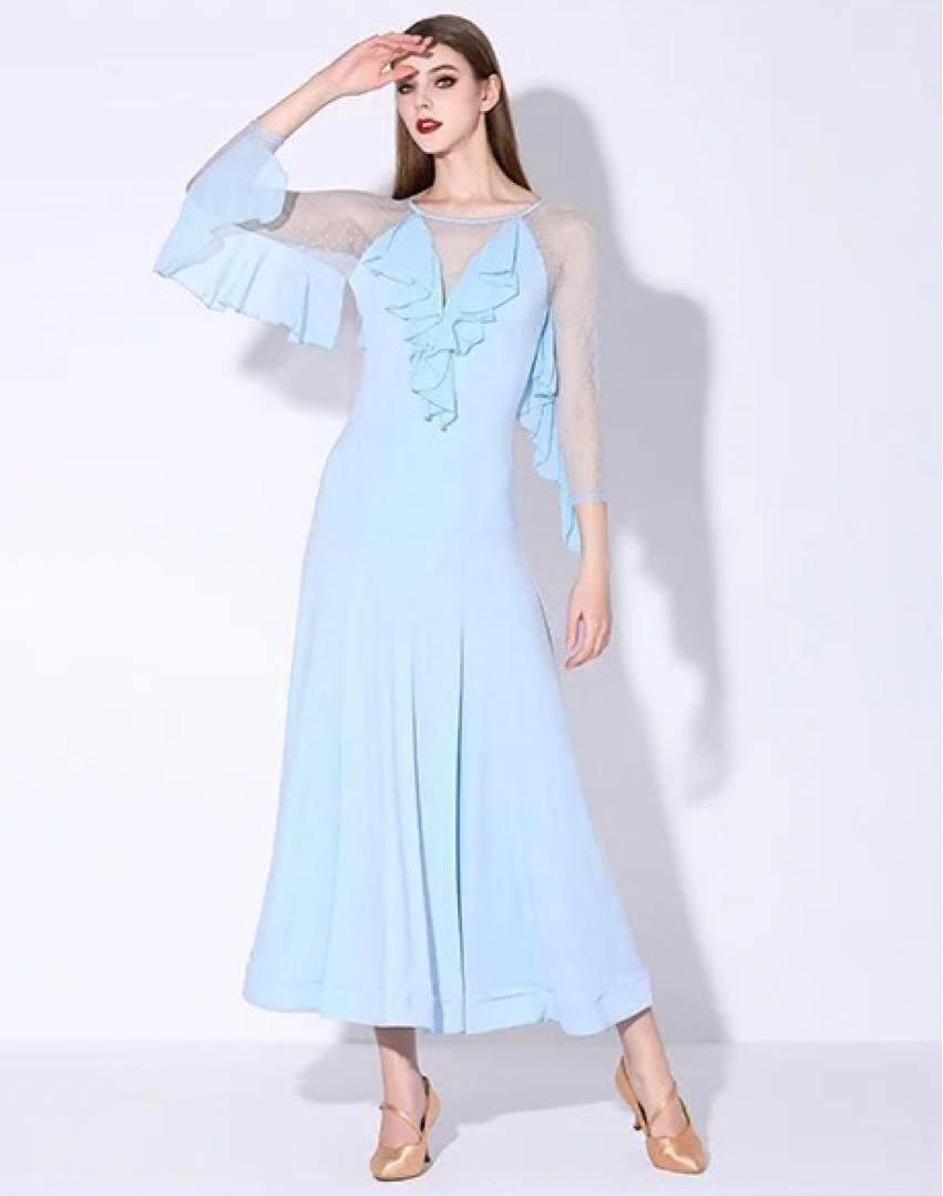 ダンスパーティーでの華やかな動きを引き立てる、スタンダードスタイルの練習着ワンピース。弾力性と快適さを兼ね備えたデザインで、華やかな舞台でもしっかりと輝きを放ちます。