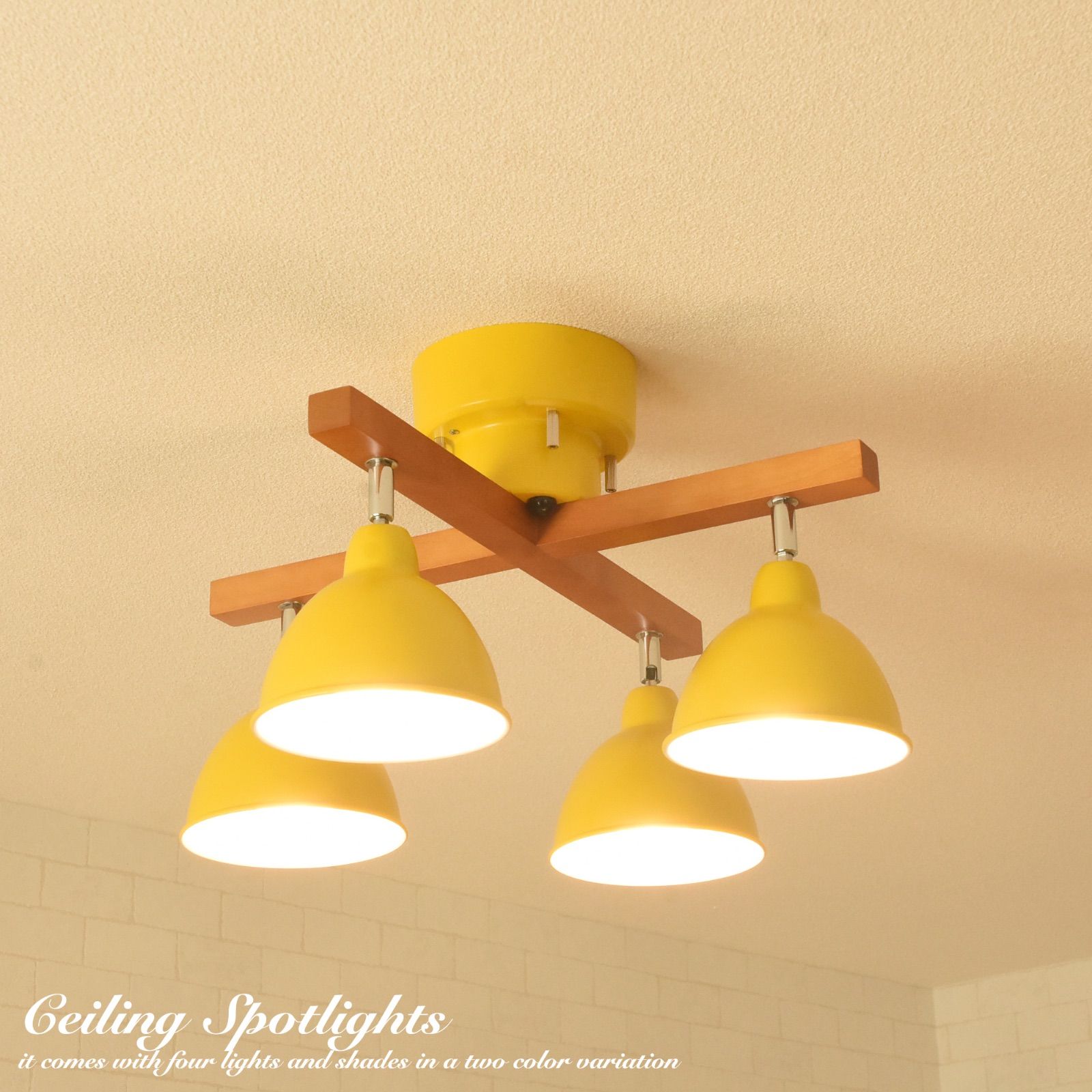 アイアンのカラフルなシェード。 木製のロッドがナチュラルなシーリングスポットライトです。カラフルなシェードは7色ものバリエーション。