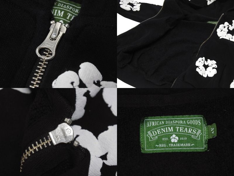 DENIM TEARS デニムティアーズ ジップアップパーカー キッズ ブラック コットン サイズ4 Y 4 b 005354