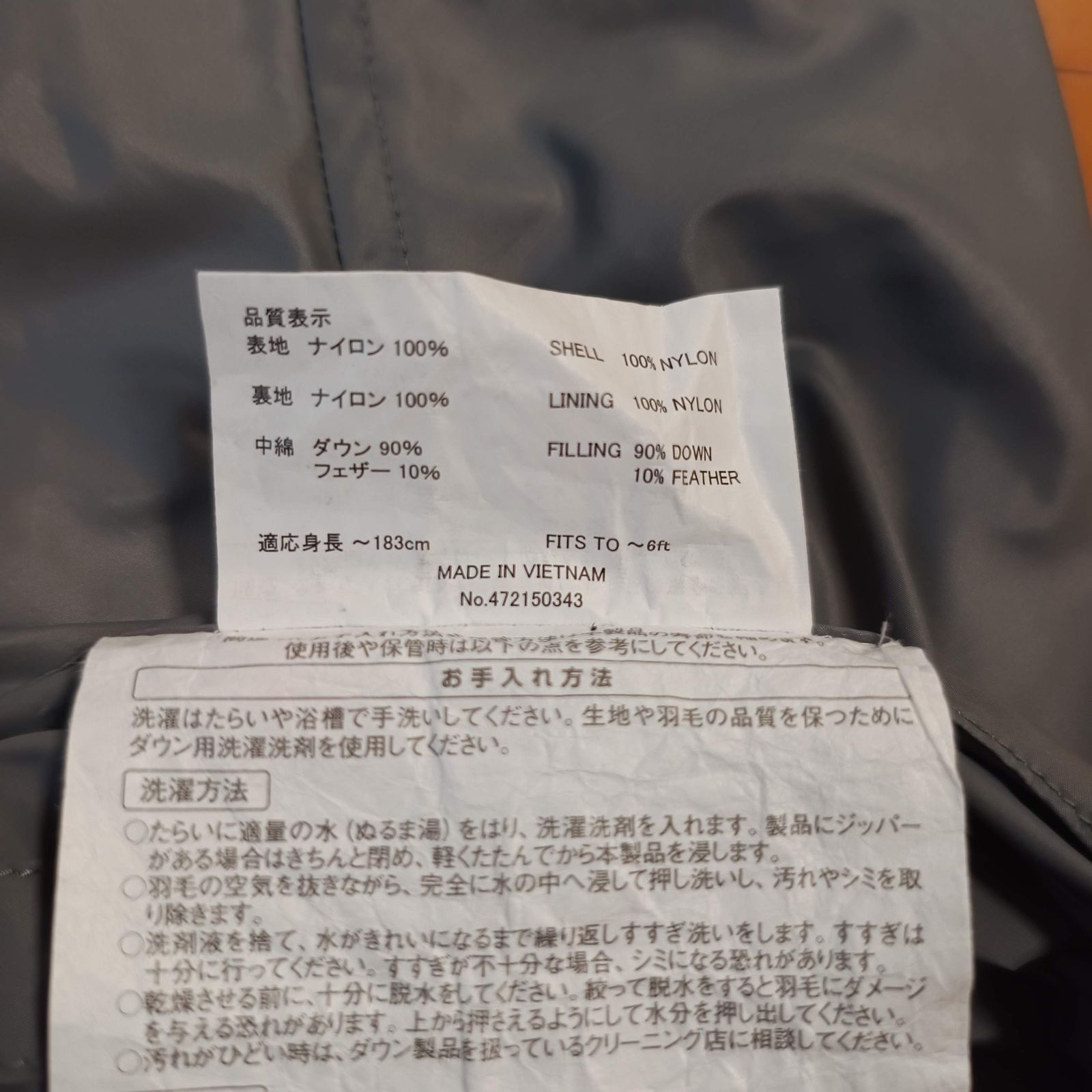 中綿:800フィルパワーEXダウン