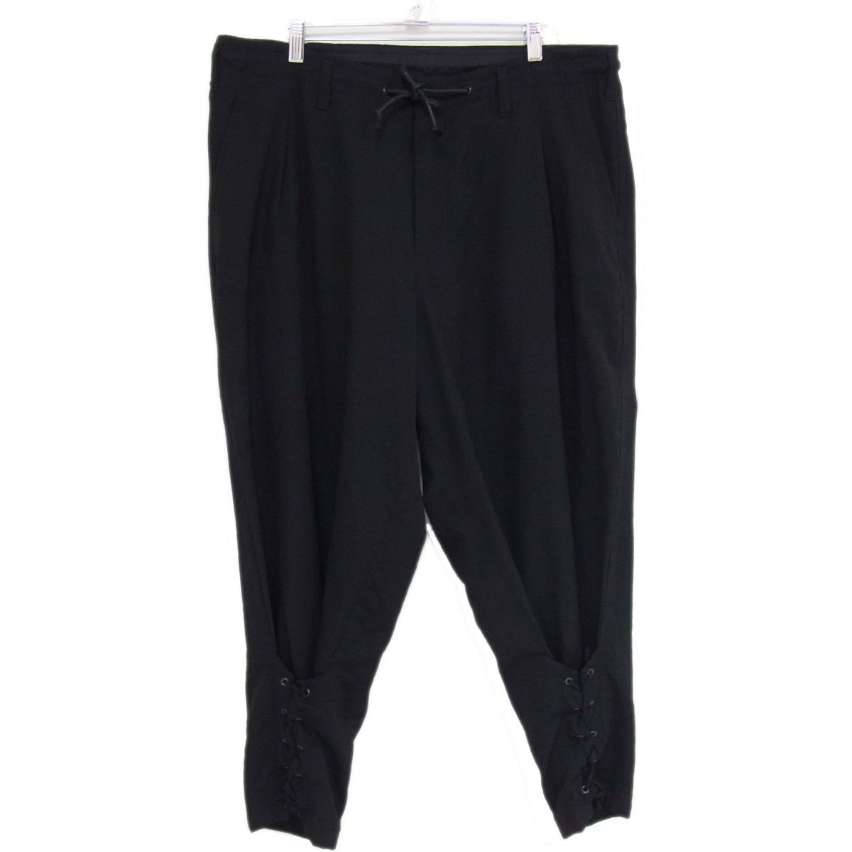 定価8万 Yohji Yamamoto POUR HOMME 19 AW ウールギャバジン パンツ 前裾 レースアップ ブラック ヨウジヤマモト メンズ