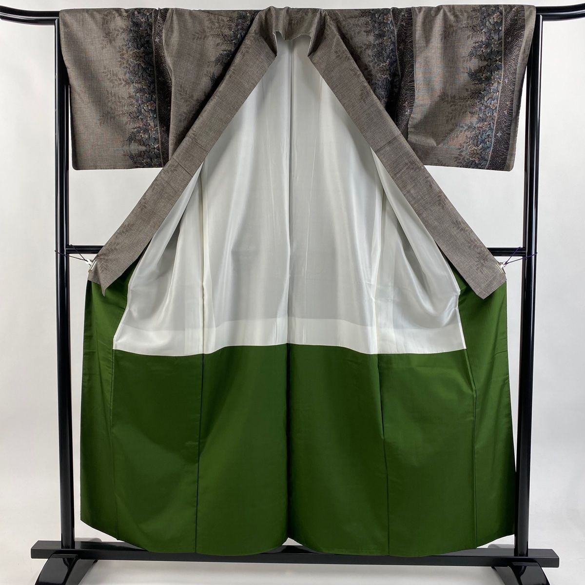 紬 身丈158 cm 裄丈64.5 M 袷 草花 シルエット 焦茶色 正絹 秀品