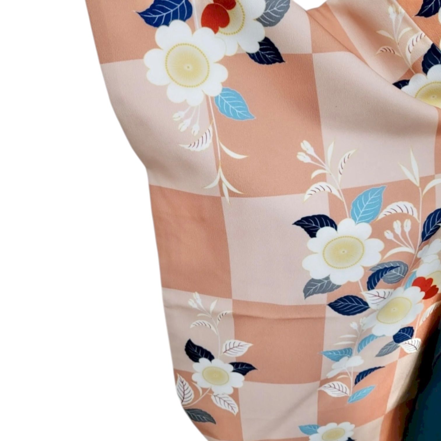 ピンクの市松模様と花が描かれた