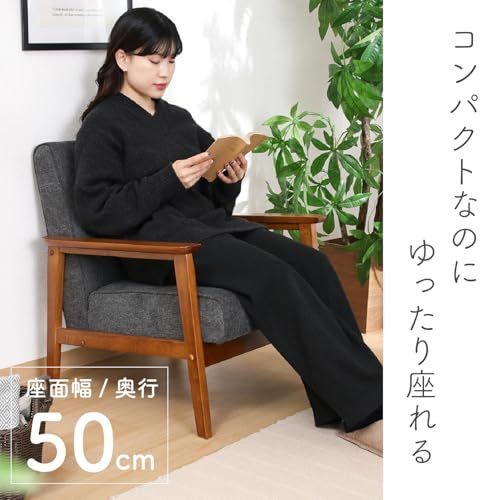 不二貿易 厚手ファブリックソファ ミート 1人掛け 幅64 奥行72 高さ70 cm グレー コンパクトサイズ 天然木 71732