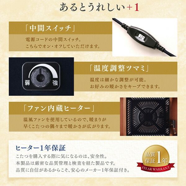 温風ファンを使用しているので、暖まりが早くこたつの隅々まで暖かさが広がります。