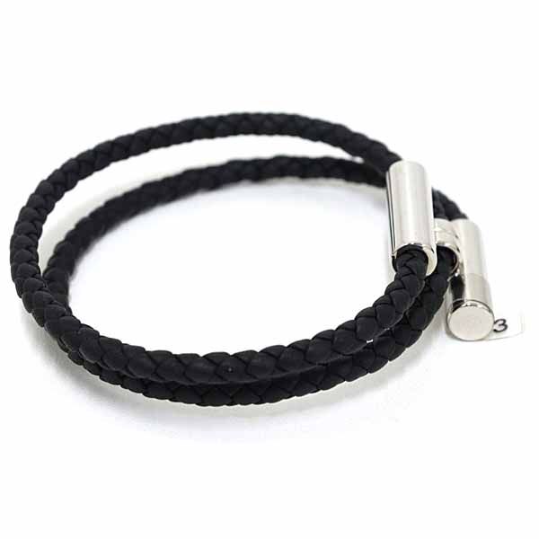 【備 考】◆エルメス HERMES レザーブレスレット 《トゥルニ》 トレッセ ブラック シルバー。